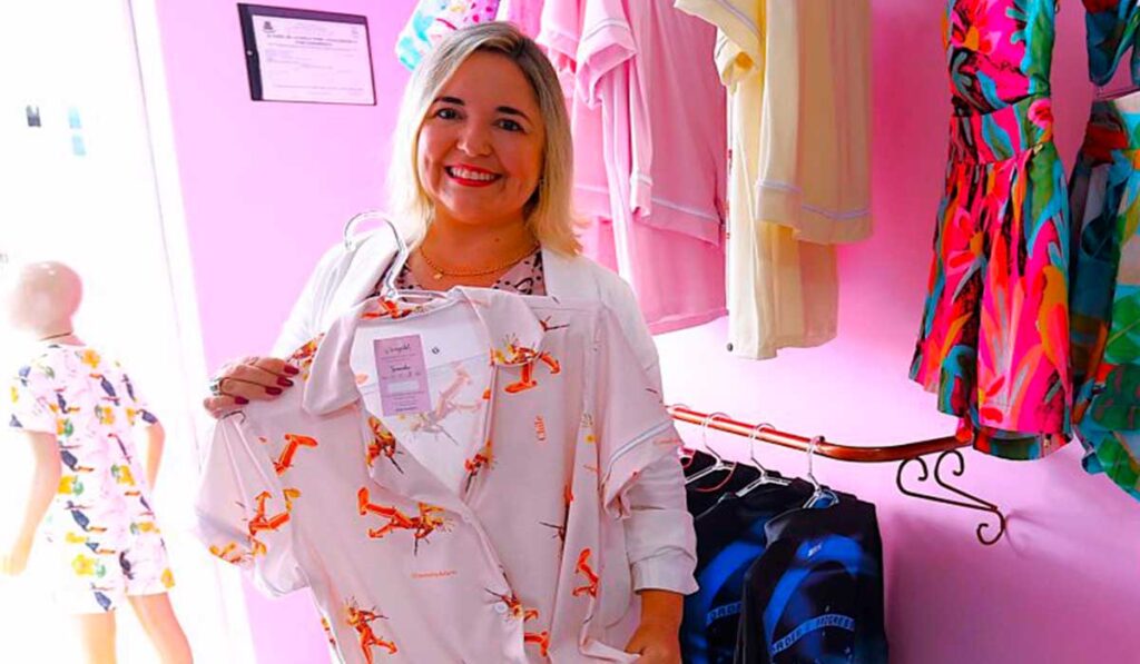 Este é o caso de Bruna Coelho. A empresária chegou em Porto Murtinho em 2019 e resolveu mudar sua história. No inicia fazia sua mala e saia para vender roupas na cidade. Depois resolveu criar sua primeira loja, que tinha um diferencial, a criação de uma coleção de pijamas personalizados, que são usados não apenas para dormir, mas durante todo o dia.