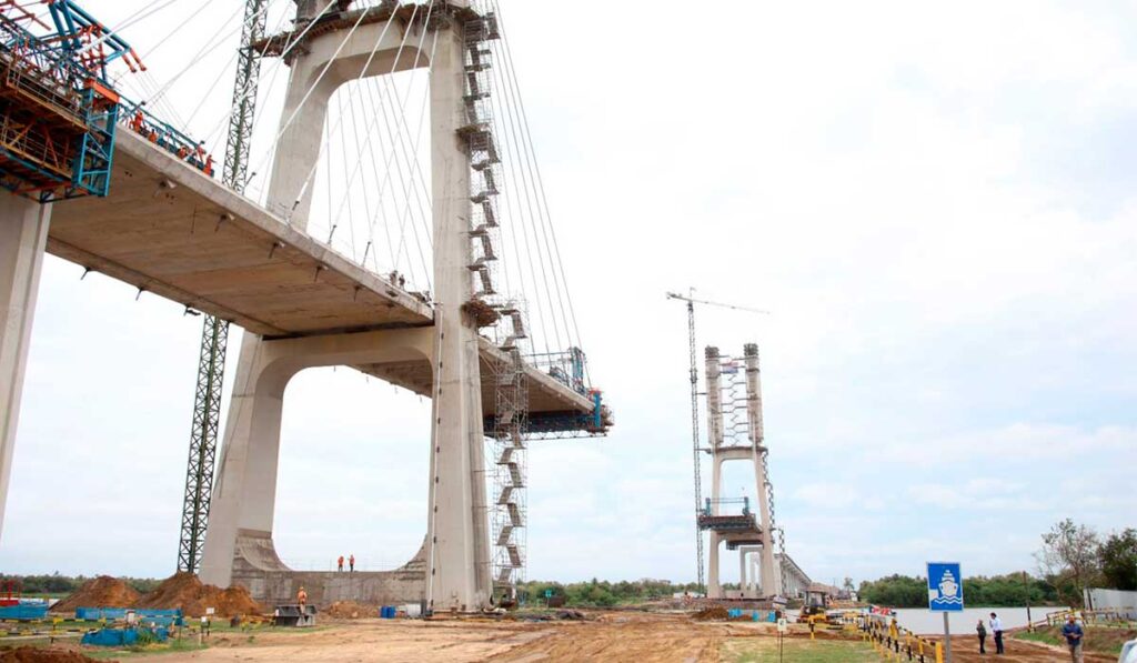 Seguindo um corredor rodoviário pelo Estado, a rota de integração chega a Porto Murtinho (MS) em direção ao Paraguai. Lá está sendo construída a ponte binacional, que liga a cidade sul-mato-grossense a Carmelo Peralta (PY). A estrutura já está com 80% dos trabalhos concluídos, com mais de 400 trabalhadores atuando no canteiro de obras.