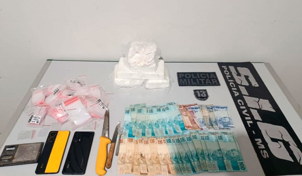 Com o casal, foram apreendidos 3,015 kg de cocaína, além de petrechos utilizados para preparo e fracionamento, como balança de precisão, faca, colher com resquícios da droga e cerca de 1.500 embalagens plásticas tipo zip lock. Também foram apreendidos R$ 3.183,00 em dinheiro, aparelhos celulares e um veículo utilizado na prática criminosa.
