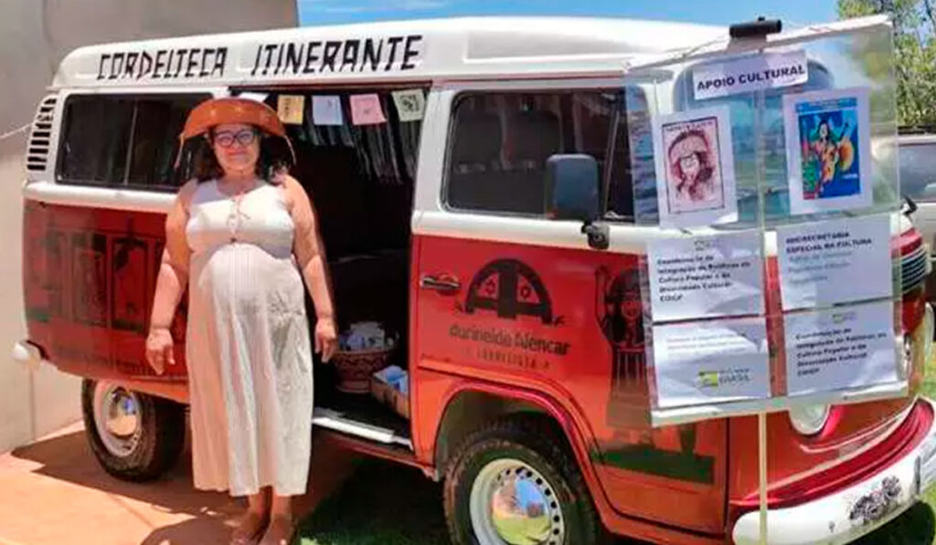 A Literatura de Cordel, tão enraizada no Nordeste, encontrou em Mato Grosso do Sul um novo território pelas mãos da artista paraibana que escolheu Dourados para viver desde a década de 1990. Em 2019, essa relação ganhou estrada. Aurineide colocou em circulação a Cordelteca Itinerante, uma Kombi vermelha adaptada como espaço cultural móvel. No interior do veículo, mais de três mil títulos de cordel, entre clássicos e contemporâneos, percorrem escolas, praças e comunidades, ampliando o acesso à leitura e preservando a tradição. A Cordelteca é reconhecida como Biblioteca Comunitária de Mato Grosso do Sul, cadastrada no Sistema Nacional de Bibliotecas.